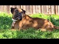 OLIVER A244825 an 8 year old male Boxer at the Santa Cruz County Animal Hospital strolls and plays on the shelter campus.